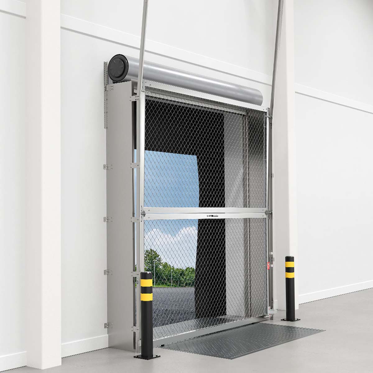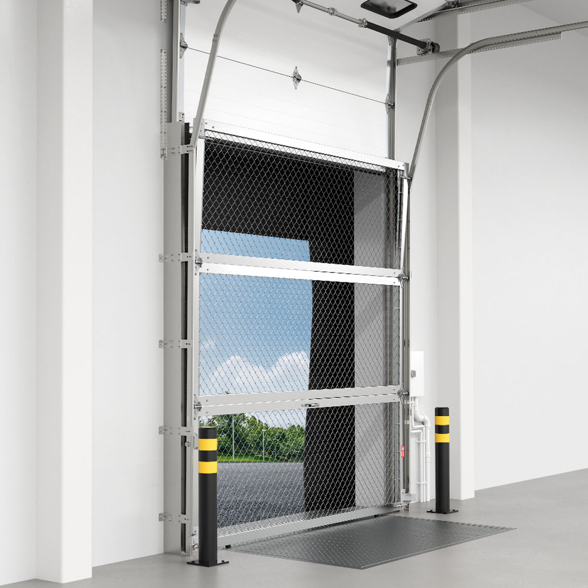 NEW FOR 2024, Fall Shield is the ultimate solution for OSHA compliant fall protection at the loading dock. Safeguard your employees and your workplace with our all-new Fall Shield™ system. Crafted from durable galvanized steel mesh and engineered for reliability, Fall Shield offers unparalleled protection against workplace fall accidents, ensuring peace of mind for both employers and employees. Our custom sizing and innovative design seamlessly integrates with your existing door infrastructure, making installation a breeze. Say goodbye to worries about fall safety and stifling heat. With Fall Shield™, enjoy the best of both worlds – unbeatable protection and refreshing airflow. Available in the ever popular Safety Yellow or Mill Finishes, Fall Shield™ will elevate your workplace safety standards and help your business comply with OSHA 1910.28. Fall Shield is perfect for locations when a full Rasco door isn’t needed for security or pest protection.
